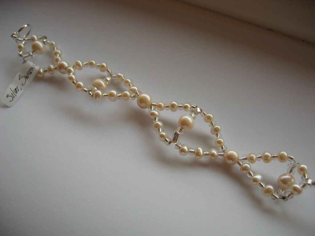 You may choose an existing piece, or have a piece individually made to your exact requirements. Locally based Brides will be measured personally by me. Contact me for details. Brides further afield will be carefully guided through a step-by-step measuring process. With my assistance, you will then choose a basic shape or style of necklace, such as silver or floating. Choose the stones, for example pearls, crystals or gems, and then decide on the length, distribution of stones fastenings etc. At this point I will advise you of the price. I will then design and make the items from this information, and show you the piece. When you are happy with the design, only them will you purchase the piece. |